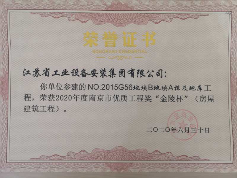 日前,南京建築業(ye) 協會(hui) 公示了2020年南京市優(you) 質工程獎“金陵杯”項目名單,由江蘇省安承建的NO.2015G56地塊B地塊A棟及地庫工程項目獲此殊榮。