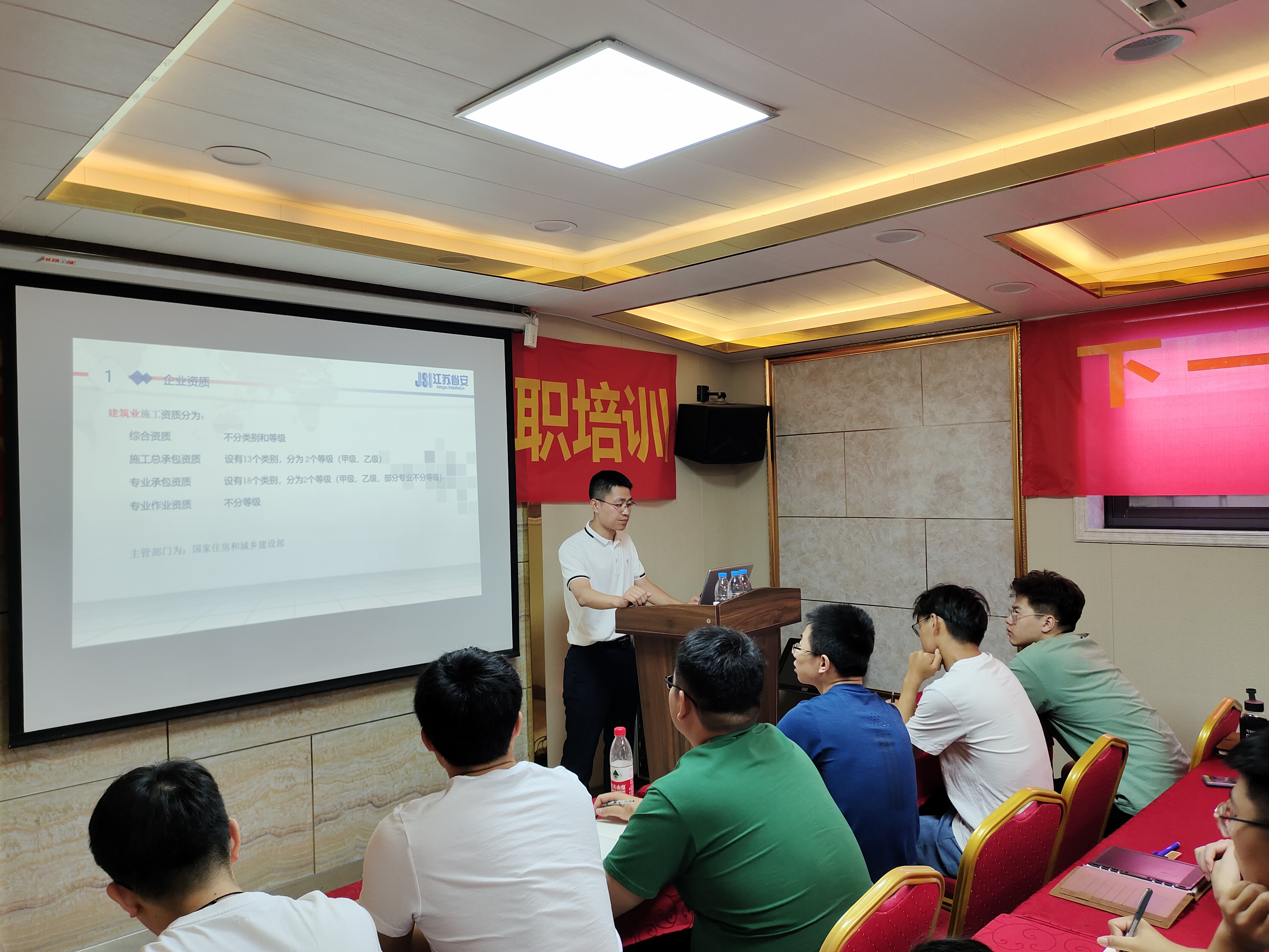 公司項目管理中心經理張凱為(wei) 新員工普及公司資質、證書(shu) 、獎項、管理體(ti) 係等知識,介紹了公司有關(guan) 總承包資質和專(zhuan) 業(ye) 承包資質等情況。