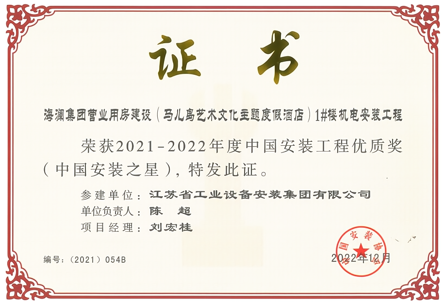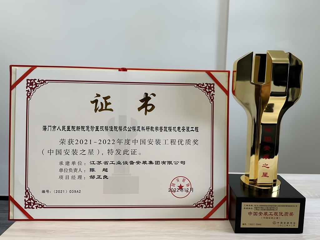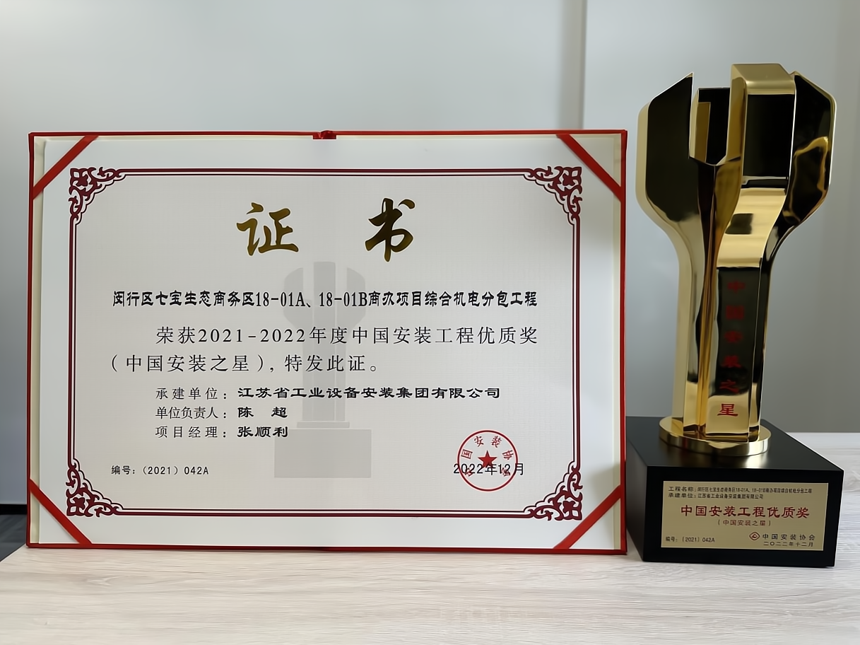 中國安裝之星是我國安裝工程建設領域最高榮譽獎項。申報這一獎項的工程應具有新穎、創新、實用性強等特點、工程質量和技術要求均達到國內(nei) 先進水平,業(ye) 內(nei) 廣泛稱其為(wei) “安裝工程的魯班獎”
