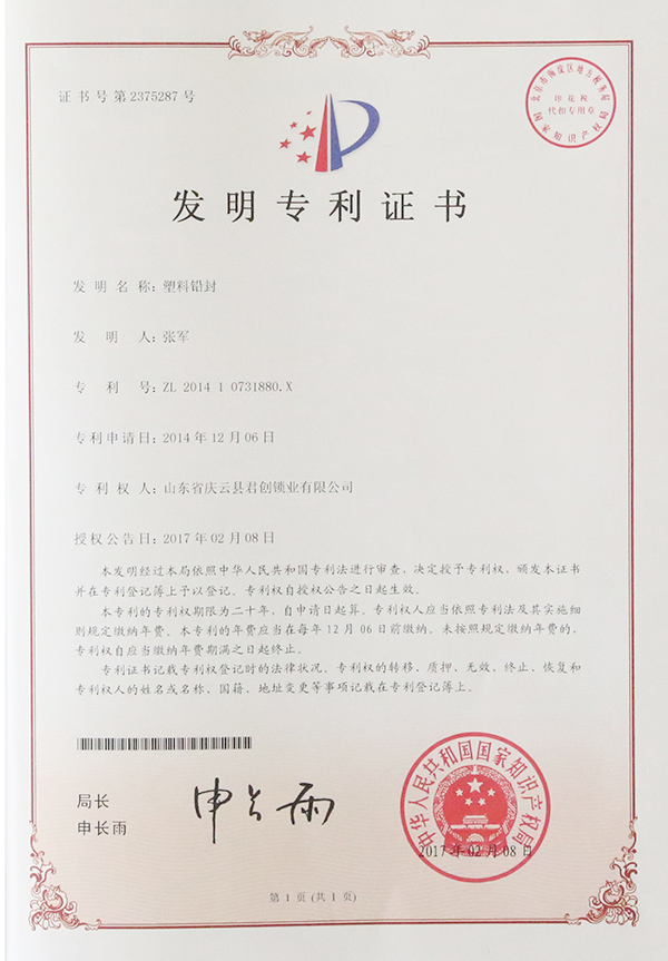 朔料铅封-配用当下发明权